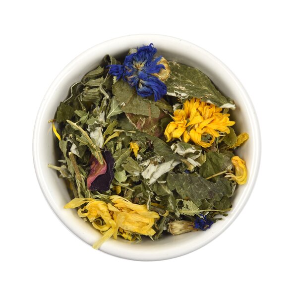 Malina list*,  Meduňka*,  Chrpa květ*,  Lípa květ*,  Měsíček květ*,  Kopřiva*,  Ostružina list*,  Rozmarýn*,  Mateřídouška*,  Kontryhel*,  Růže okvětí*