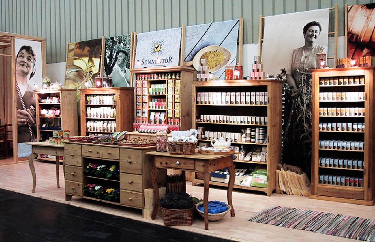 „Aber nein, Herr Inspektor – die stelle ich aus! Auf einer Fachmesse für Naturkost und Naturwaren. Dafür komme ich extra aus Niederösterreich, aus dem Waldviertel!“ erklärt SONNENTOR Gründer Johannes Gutmann begeistert. So recht überzeugt ist der strenge Herr zwar nicht, aber er winkt Hannes schließlich durch und der kommt doch noch rechtzeitig in Mannheim an, um den ersten SONNENTOR Messestand auf der zweiten Ausgabe der Biofach aufzubauen: Auf 9 Quadratmetern (kleinere Flächen gibt es nicht zu mieten) packt Johannes Gutmann seinen kleinen Holzaufsteller die inkriminierten Kräuter-Produktmuster aus. Ware hat er natürlich auch mit: ganze 30 Packerl Tee. Die komplette Ausstattung findet Platz in einem Bananenkarton und der einzige Mitarbeiter ist bereits vor Ort – denn das ist Hannes selbst.