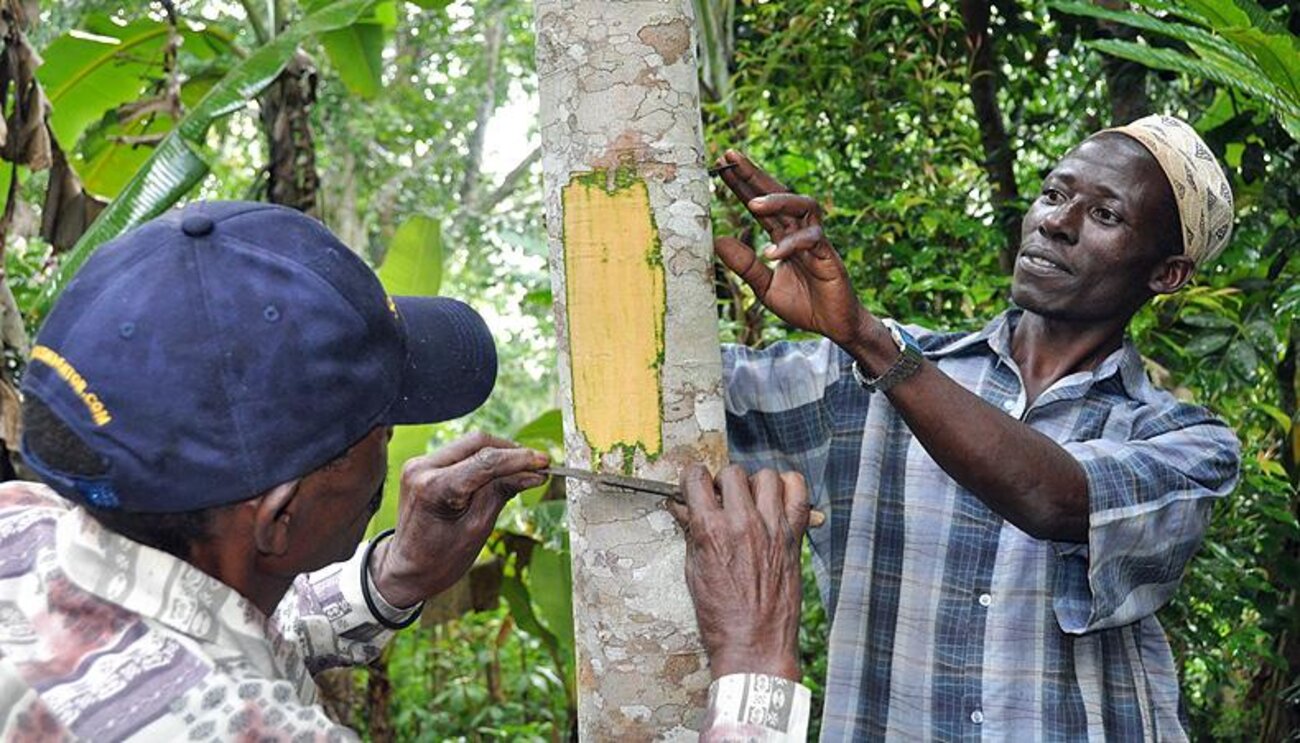 The farming families live in the middle of the jungle. Many have only about 2 acres of land to feed themselves. They grow mangoes, bananas, jackfruit and coconuts - and spices. Cars are not very useful here. Transport is by motorcycle or people must go on foot for hours and hours. The farming families receive support from Cleopa and his field officers. They also advise on the cultivation and harvest of spices. For example, cutting the cinnamon bark which requires a lot of skill